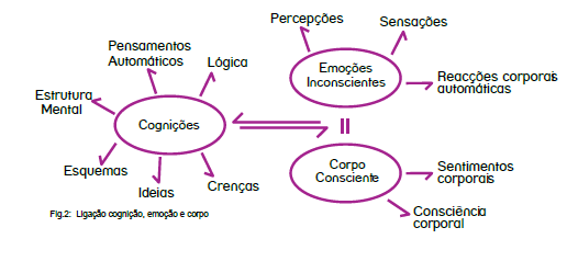 Desta forma, a psicoterapia engloba tanto as cognições como o corpo. Para facilitar a compreensão, desenhei um esquema que mostra como as três dimensões estão interligadas e fazem parte de um todo. (Figura 2)